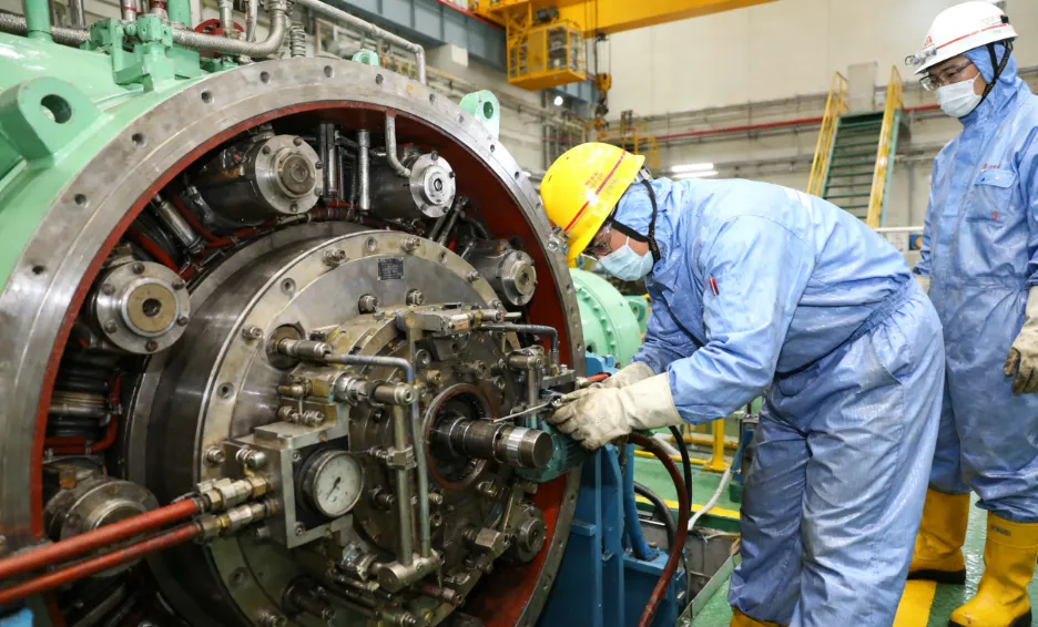 ▶ 核反应堆检修时,监测防辐射服穿戴